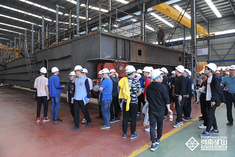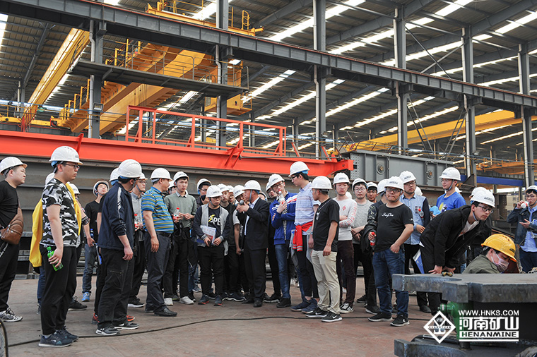 來河南礦山實習的同學們,每到一處都仔細看,認真聽,詳細做筆記,積極思考,踴躍提問,將所學理論知識與現(xiàn)場生產(chǎn)實踐相結合,對起重機產(chǎn)品的工藝技術和應用領域有了更進一步的了解。