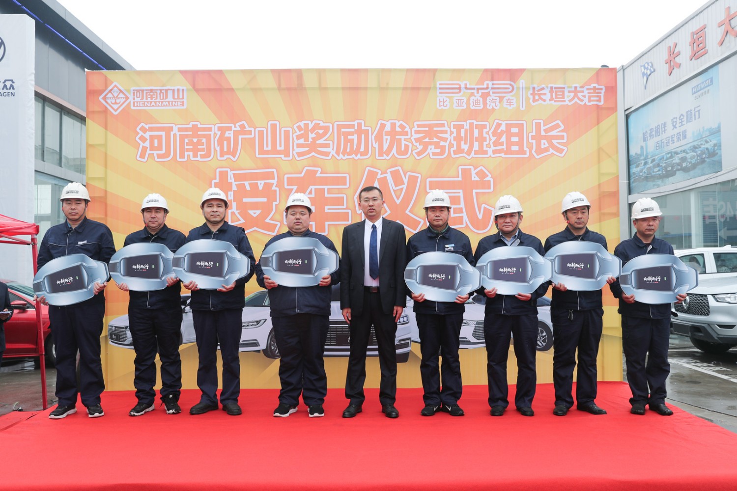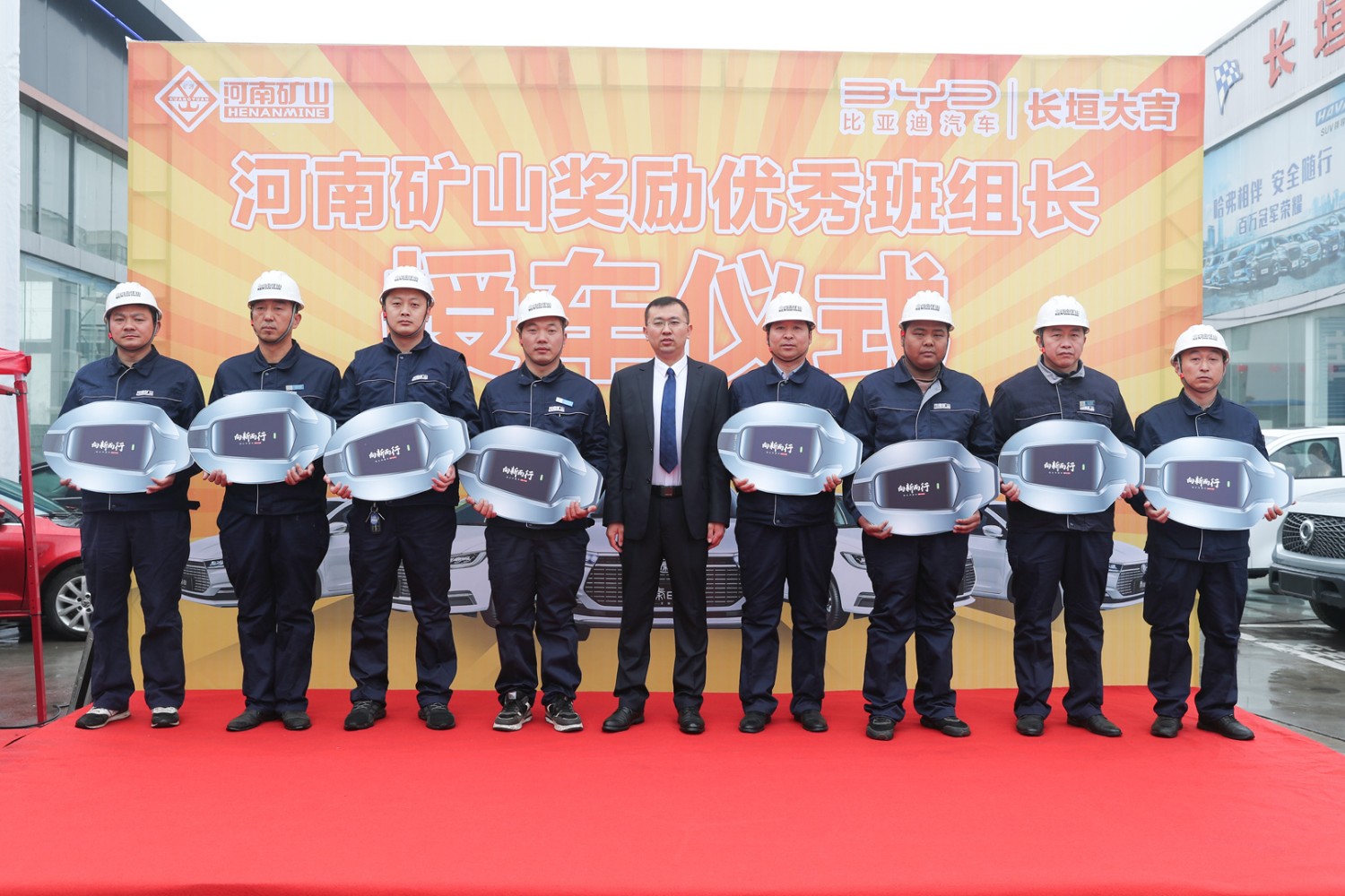 3月11日,河南礦山獎(jiǎng)勵(lì)**班組長授車儀式在長垣大地亞飛汽車城內(nèi)隆重舉行。公司24名一線**員工得以重獎(jiǎng),每人獲得一輛純電動(dòng)比亞迪全新秦EV。據(jù)悉,該批車市場(chǎng)總價(jià)值420余萬元。
